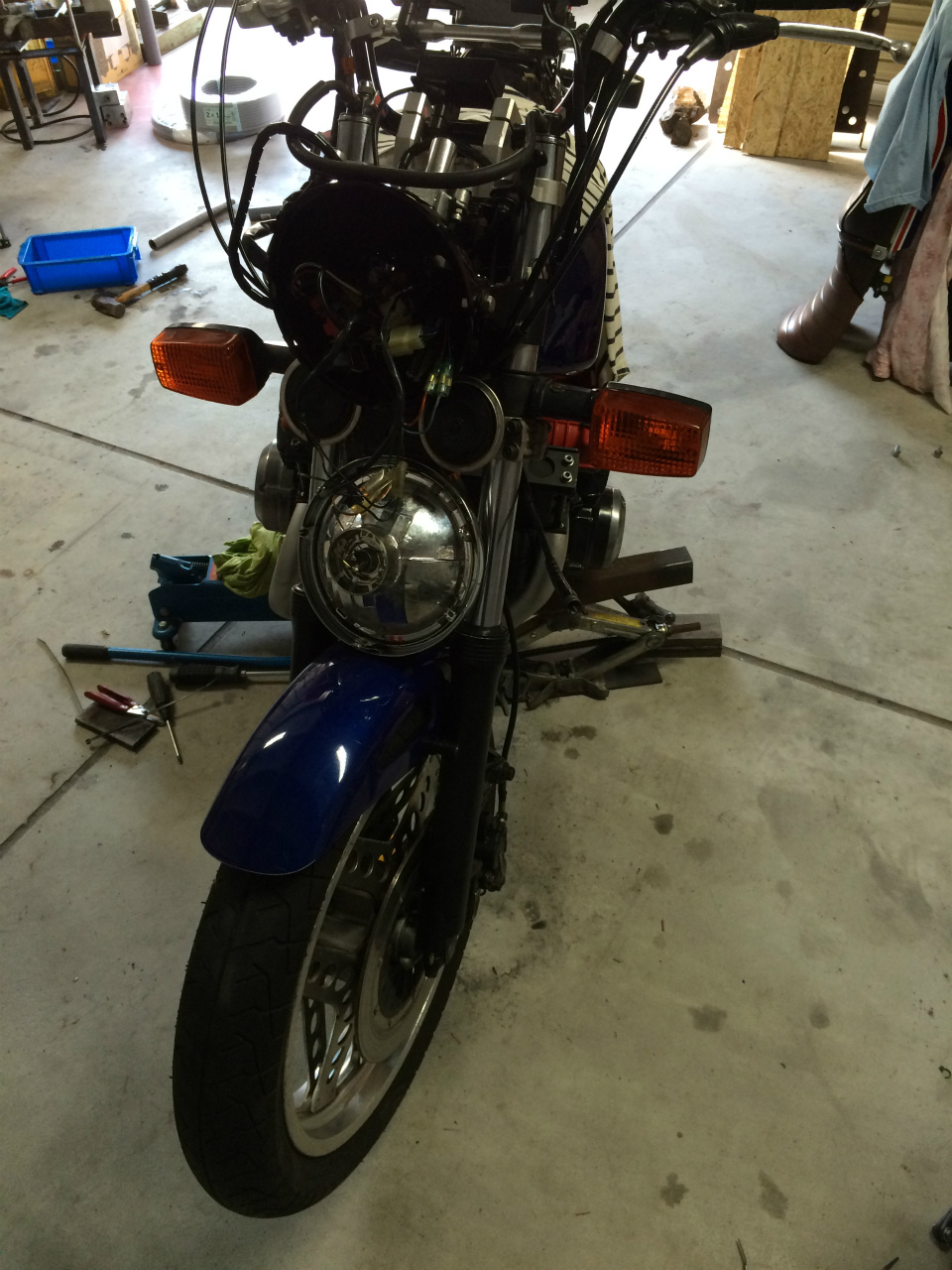 前オーナーのウィンカーポジションシステムでウィンカーの配線が間逆になっているという無駄なアクシンデントを乗り越えてライト周りも組んで殆ど終わりました。