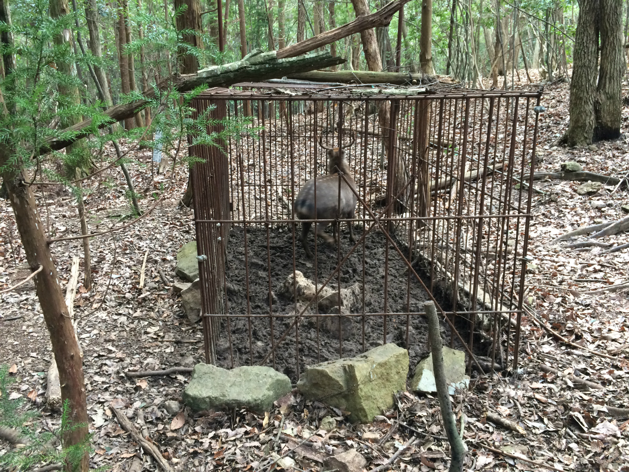 神社近くの檻に獲物が・・