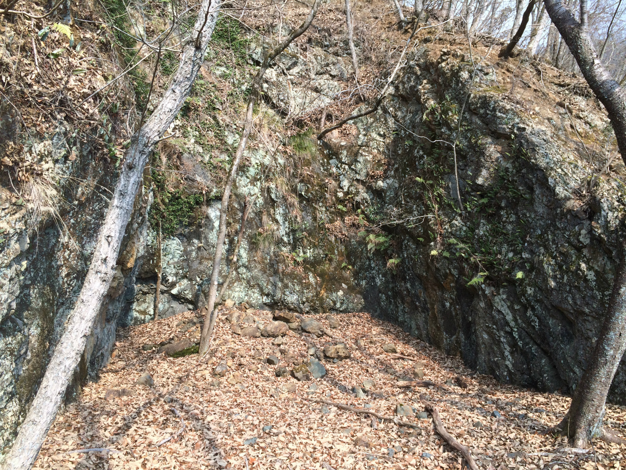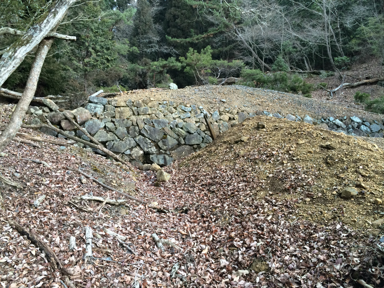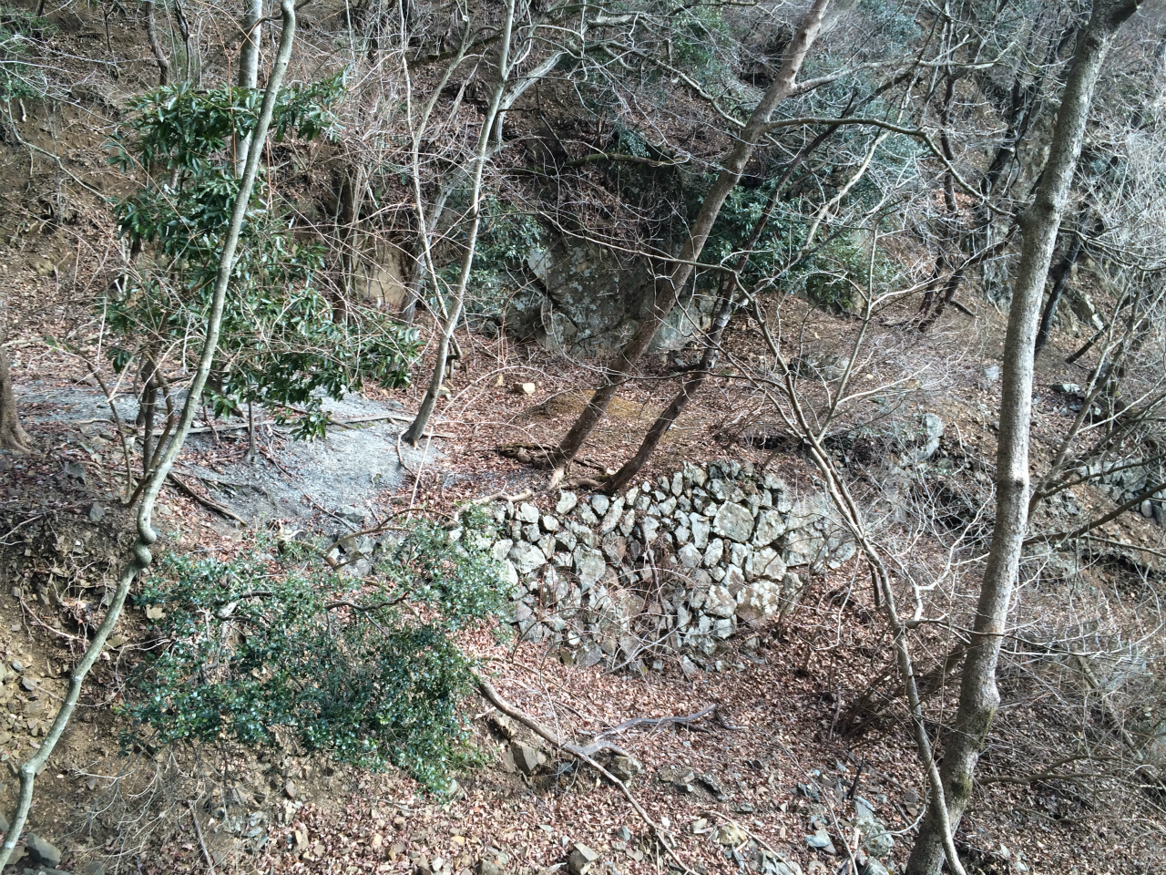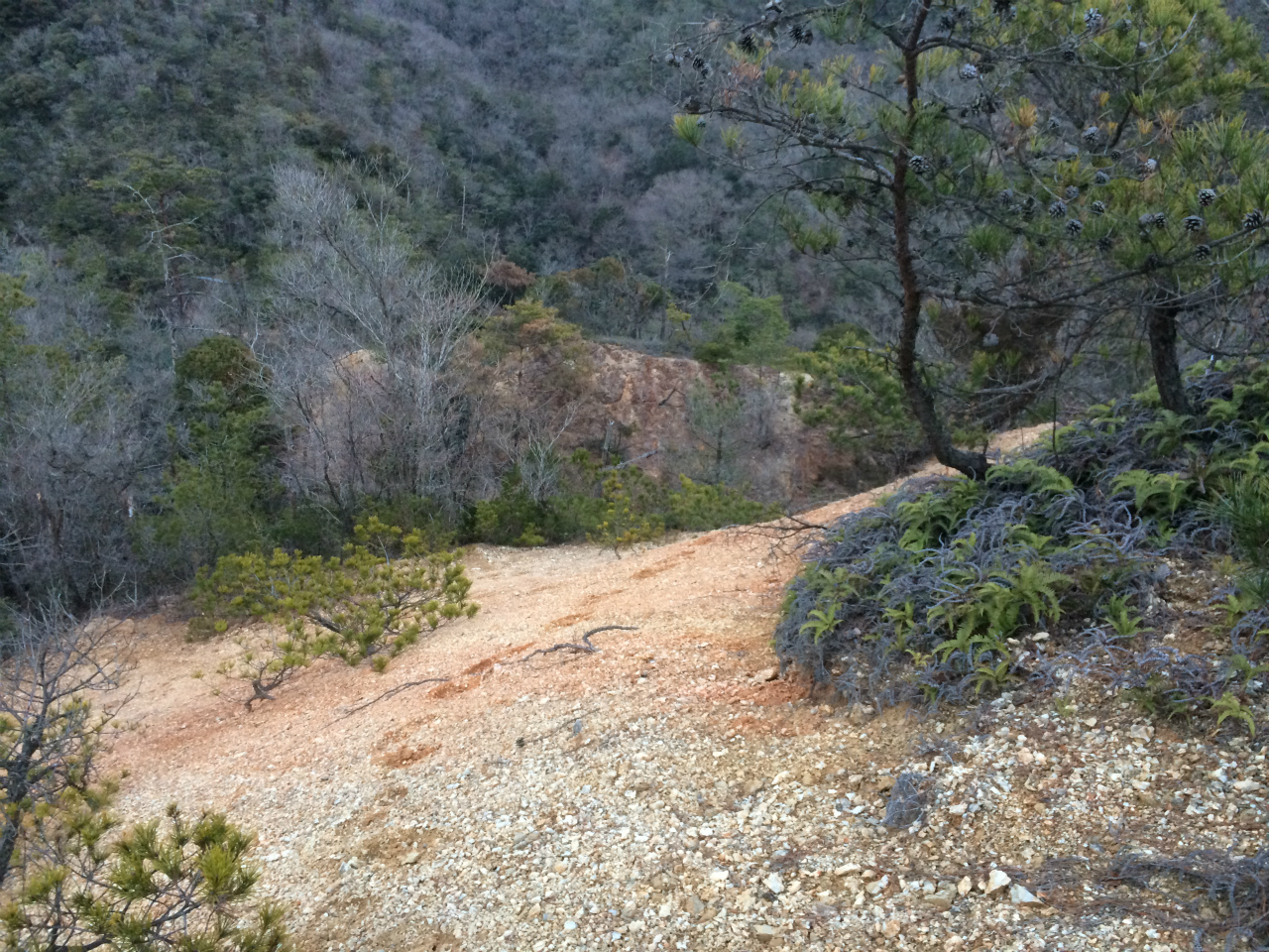 現地に着くと遠くからは木々で見えないけど、山の斜面を切ってある。
