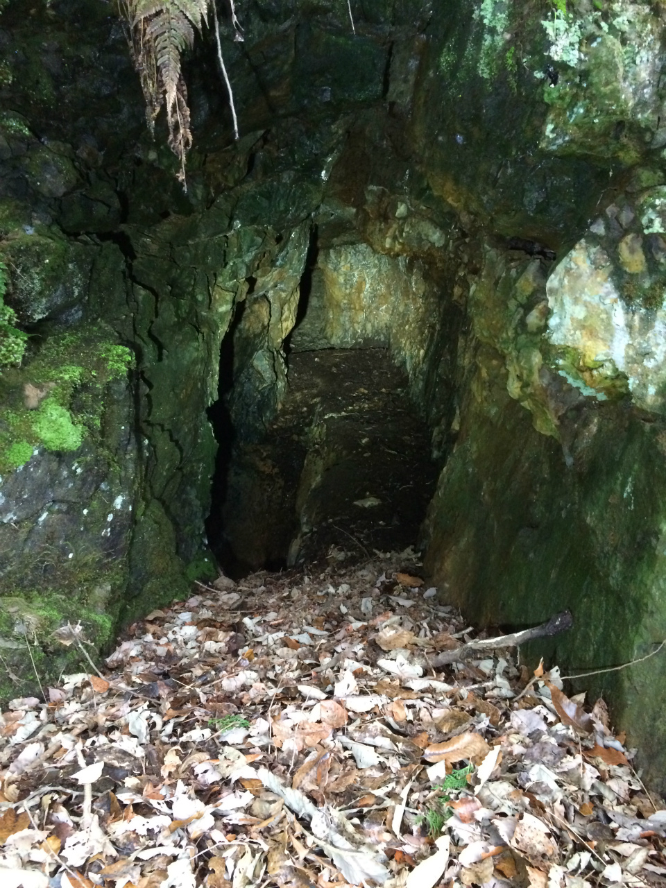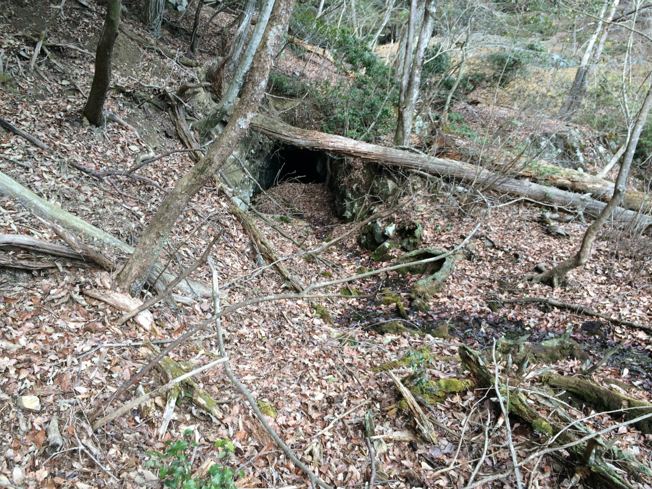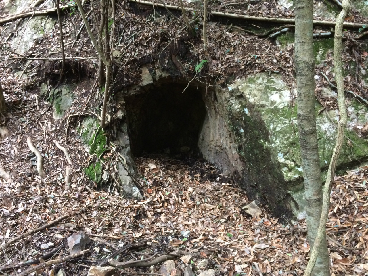 精錬所の近くに坑口がありました内部覗くと少しだけ水平と下側に少し掘ってありましたが脈が細かったみたい。