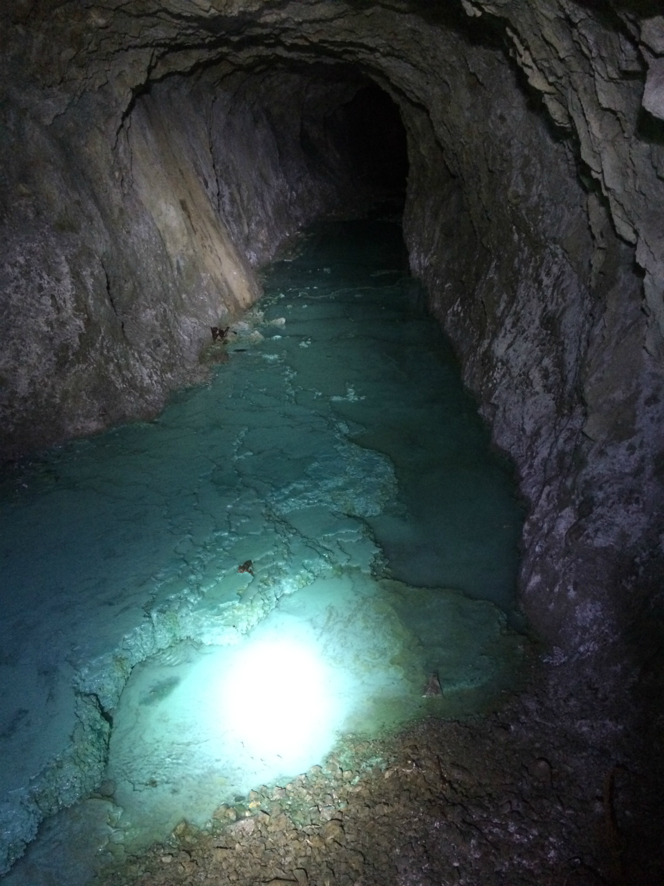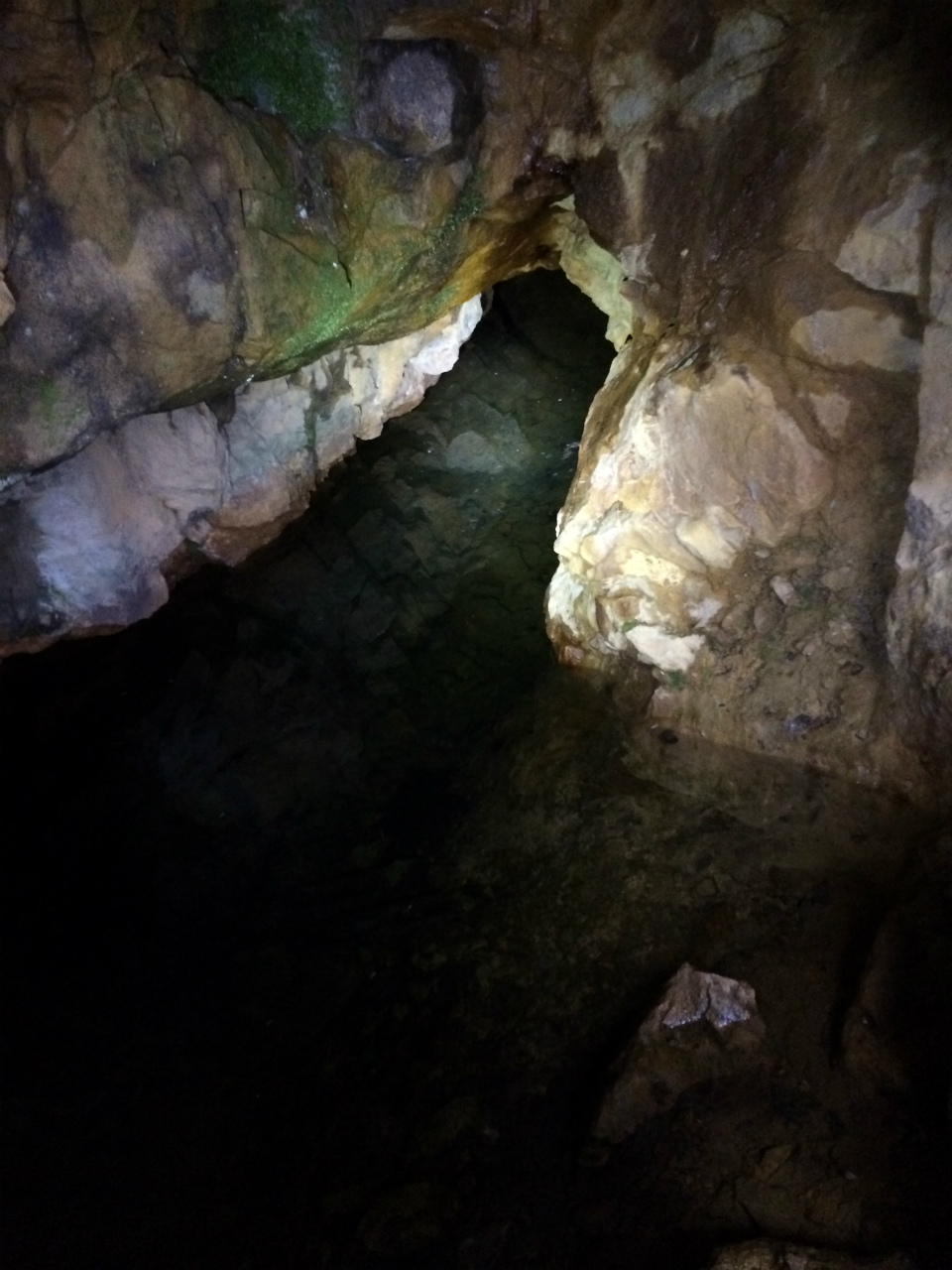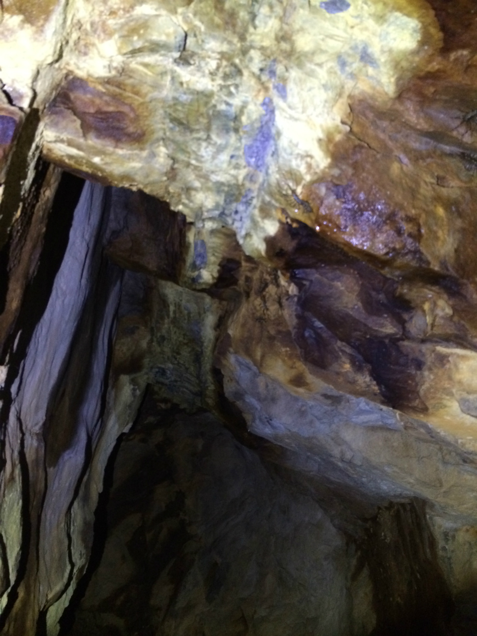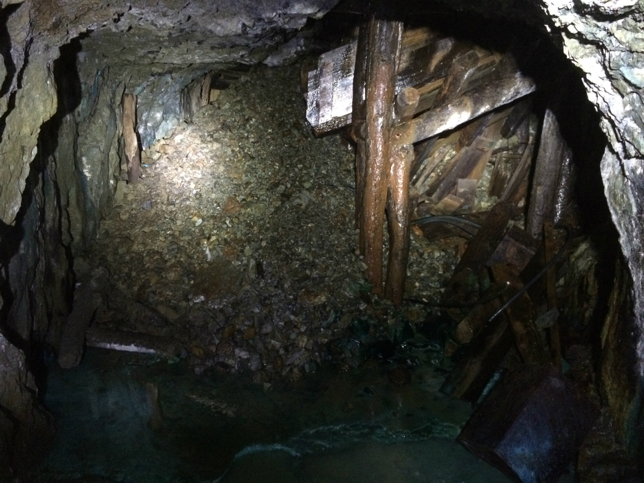 銅が染み出しているみたいで坑道が緑色の鉱水で変色しており大変面白いのですが以前は進んでもキリがないと思い途中でUターンしたのですが今回は進んでいきました。