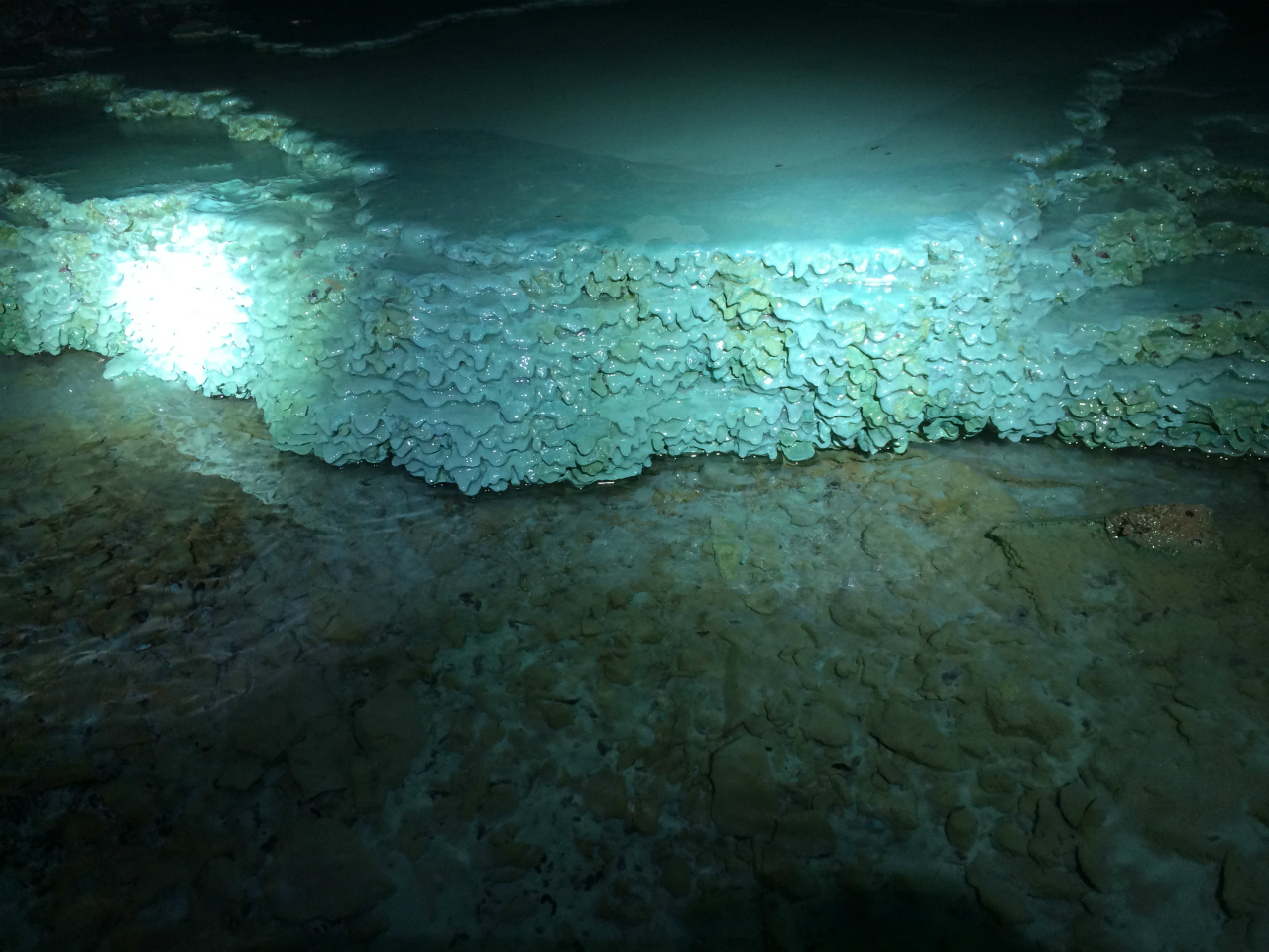 深いのかな?余りにも水が汚いですが周りには石英ゴロゴロ。