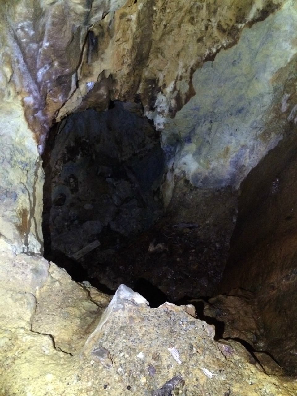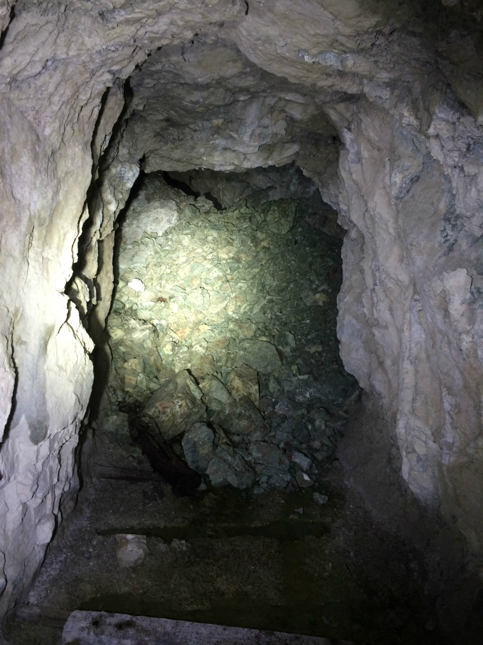上部から奥を覗くと枕木の跡が続いており普通にいけそうな感じですがこの坑道すごく浮石が多く無理をして歩きたくない為撤退。
