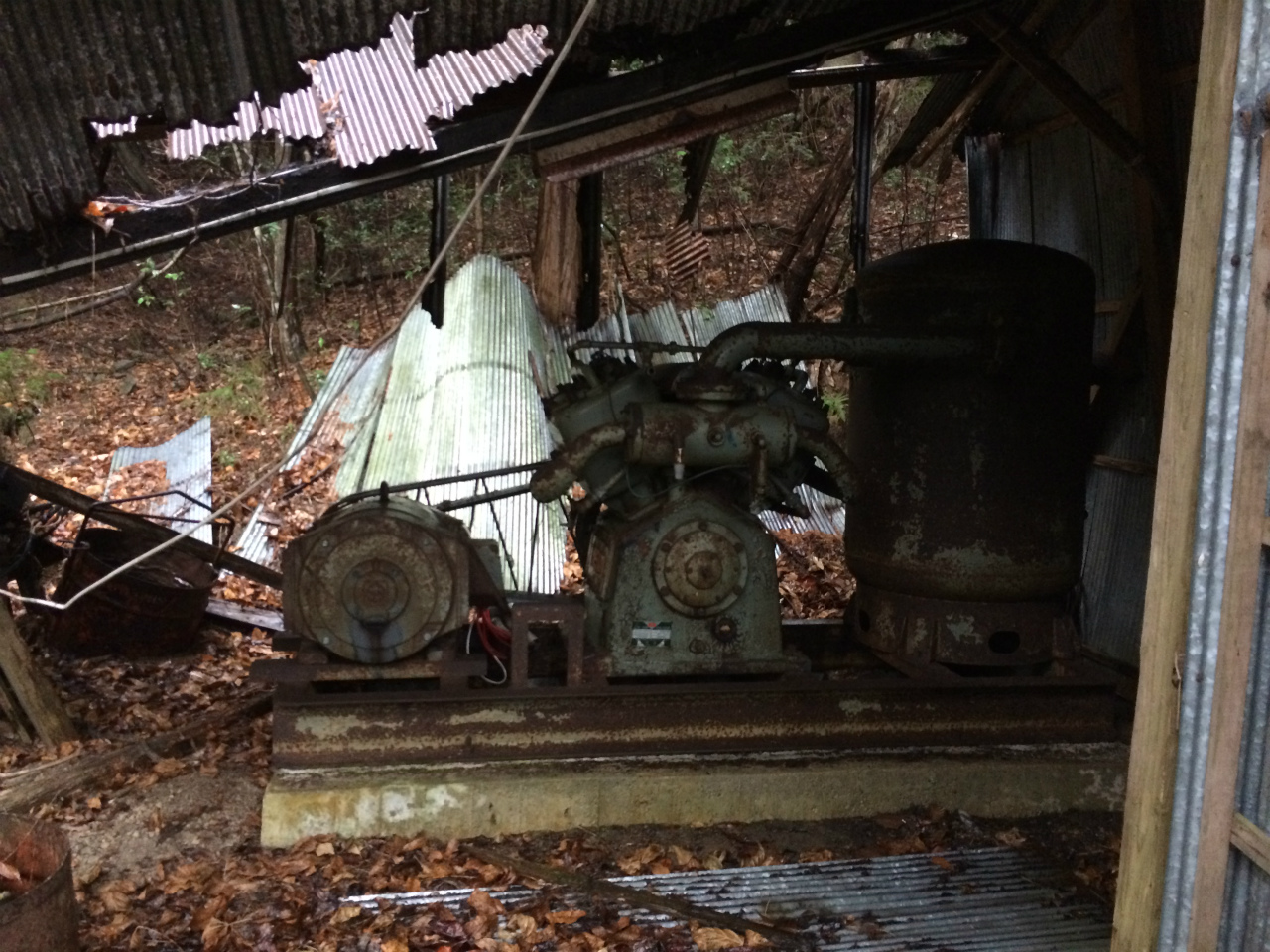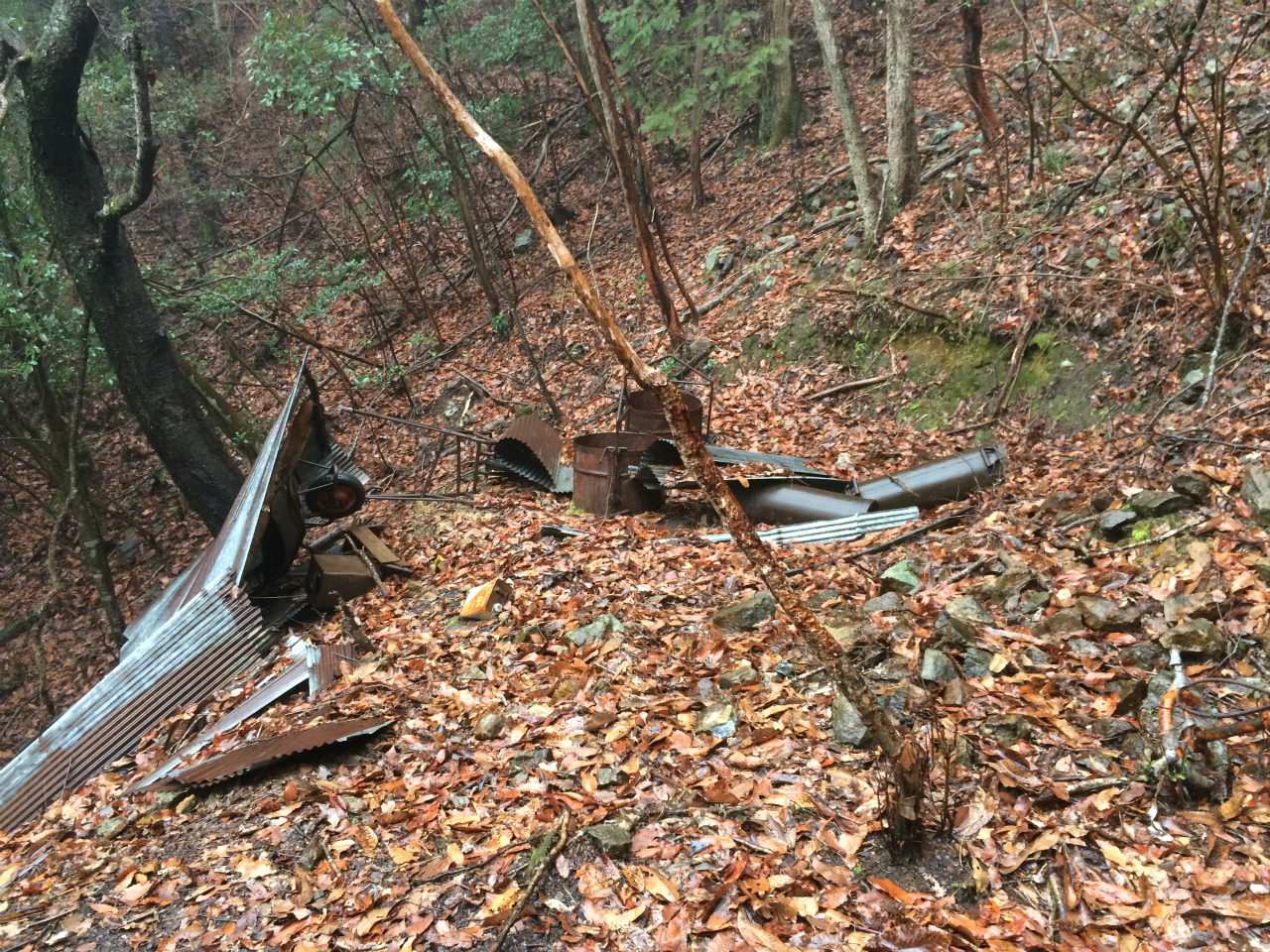 この廃屋からコンプレッサーの鉄管を目安に登っていくと索道のワイヤーも同じ方向に向っておりとっても分かり易い。