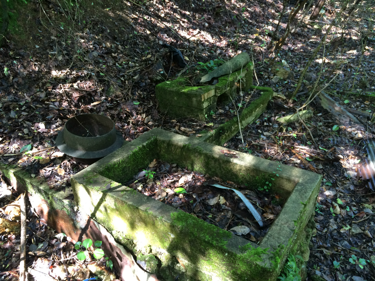 段差を上がって中覗いてみると2メートルくらいの坑口が完全に水没してました。