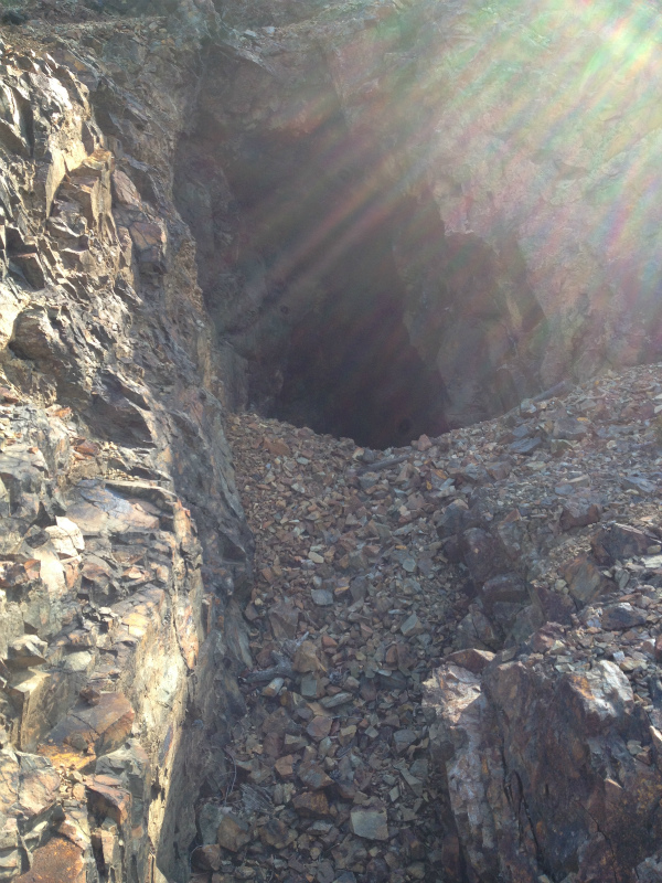 少しズレた谷に大規模な露頭がありずっーと進んでいくと坑口が数個、中を覗くと二つは竪坑でした。