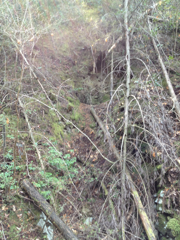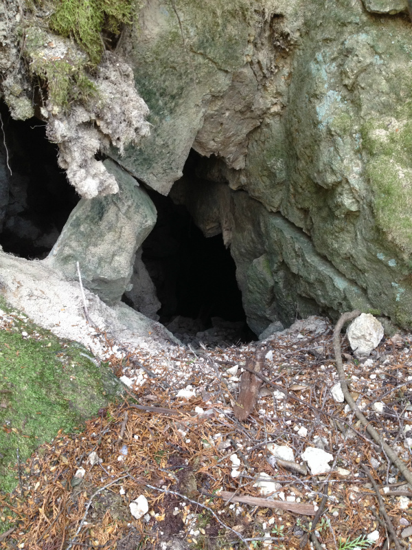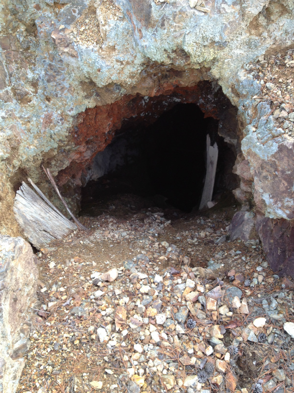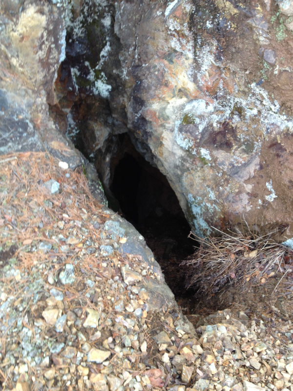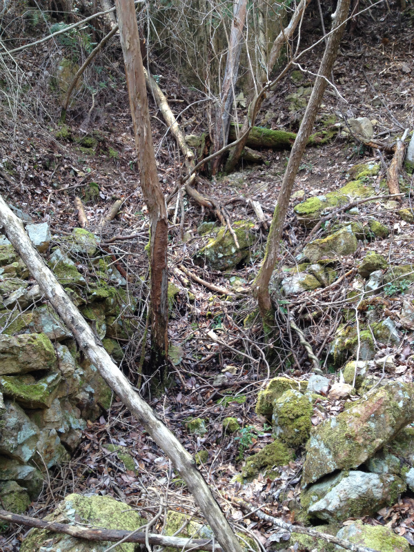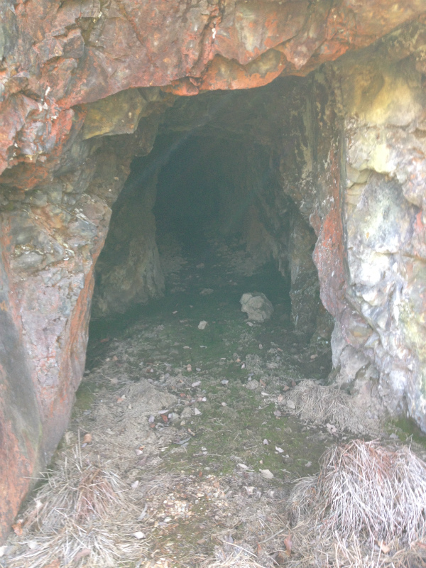中段まで登ると坑口跡が一つ。