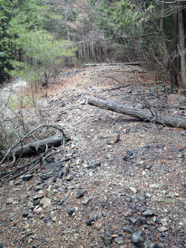 手前は採掘していた際にでた岩ばかりで少し進んでいくとズリばかりになった。