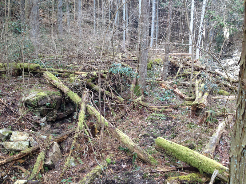 ショボくれながら最後まで下山して堰まで戻り、ジムニーまで戻って行くと右手に木々が生えてて非常に分かり辛いがかなりの面積がある場所があった。