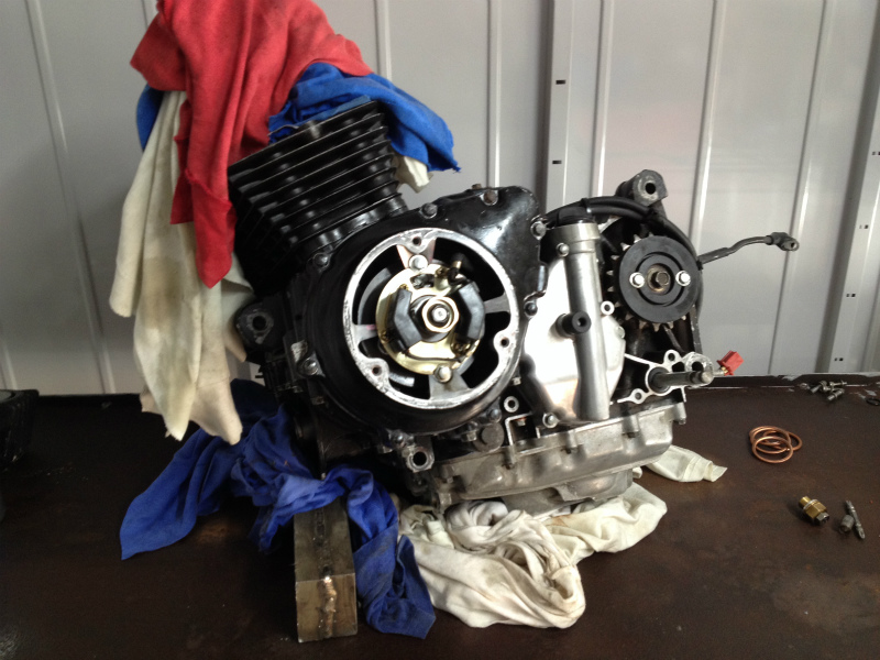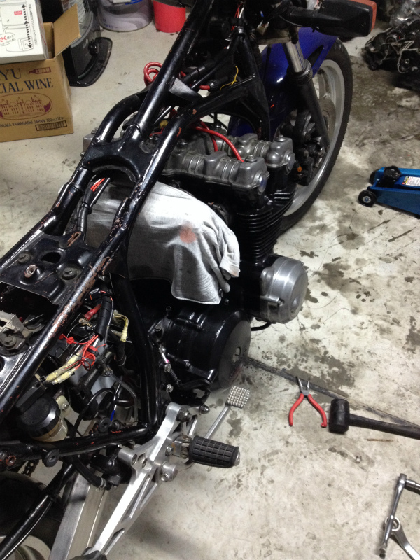さてここでヘッド仕上がったのでエンジン掃除してルンルン気分で、車体に載せる準備している所に悲劇が・・・