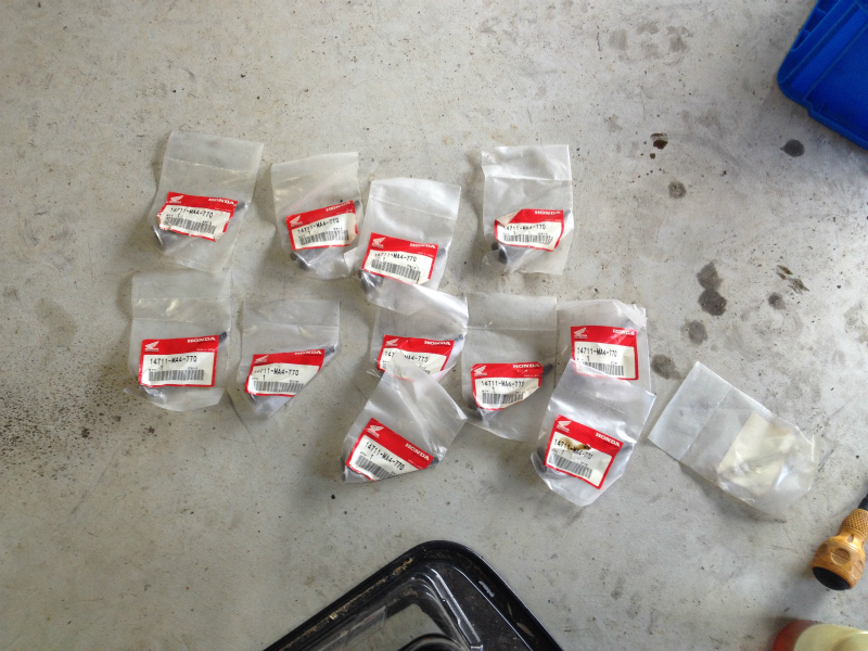 シリンダーガスケット2個、ヘッドカバーガスケット「千切れた」2個、Oリング4個、ヘリサート一式、ピストンリング1個、G2が6缶、エレメント1個、その他OH関係のガスケット、シールなどなど。