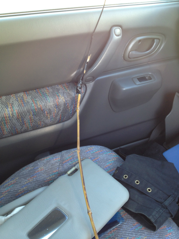 車両は新築の方の土地に置いてるので道具だけ持って言ったのですが内張り通すのに細い棒がなかったので庭に落ちてた細い竹使って配線しました。