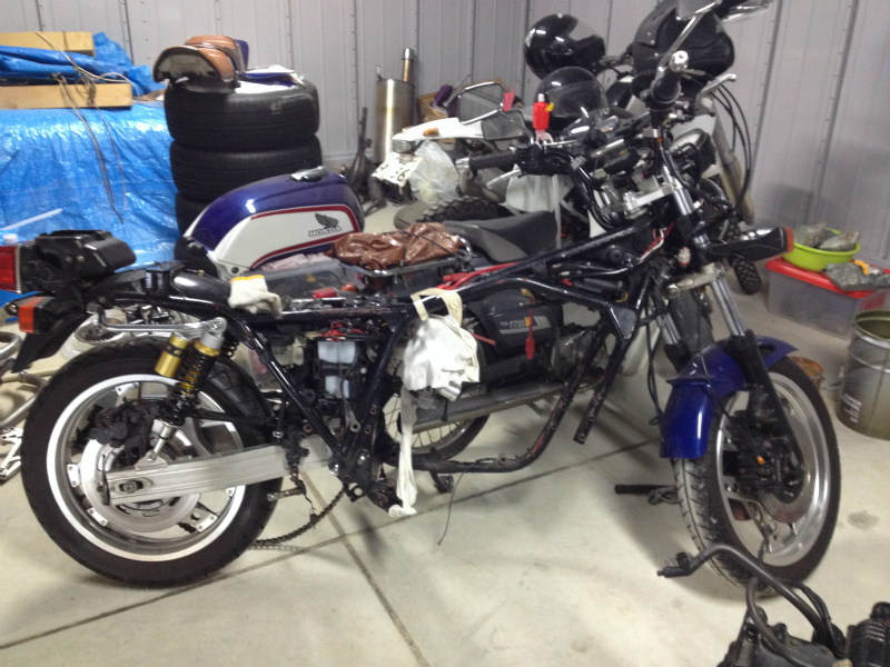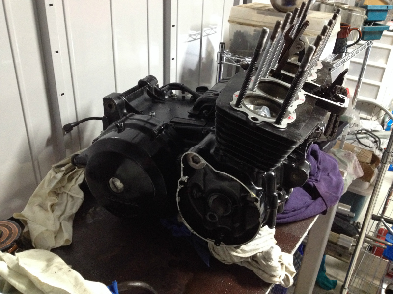 車庫もできて道具と車庫内も整理できたのでCBのエンジン交換作業はじめました。