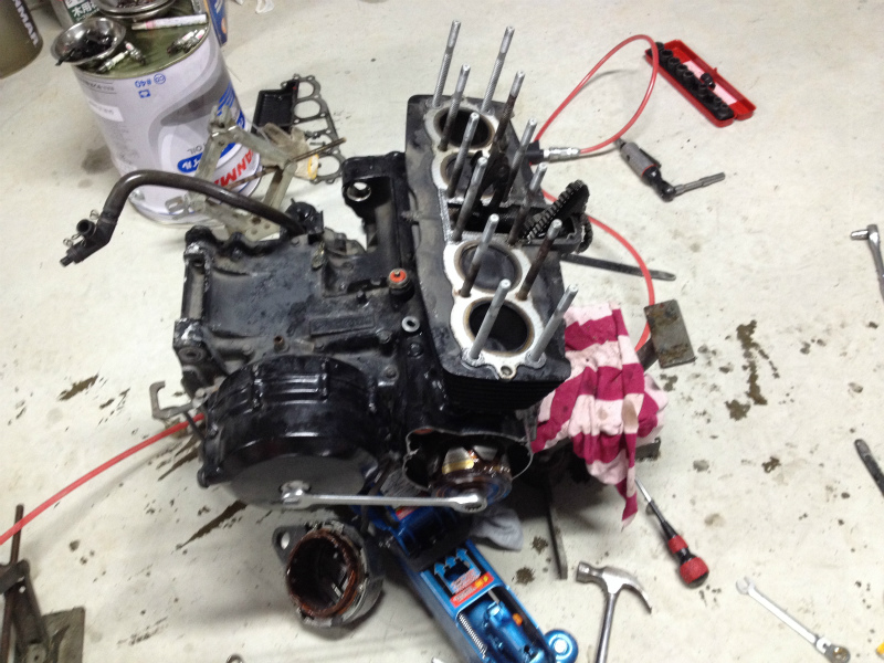点検をしてから以前組みつけていた900の方に取り付けるエンジンの部品外して行きます。