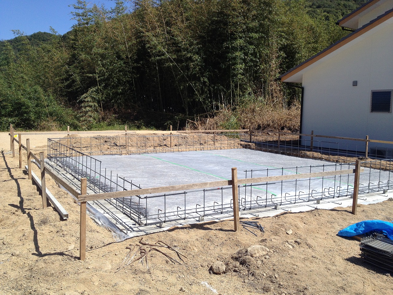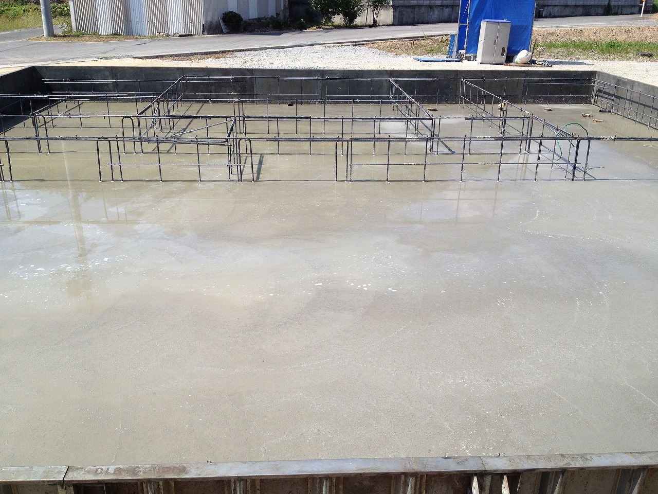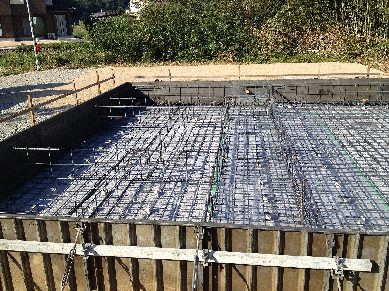 画像はないですが基礎配筋補強してから型枠据えて立ち上がりに流し込んでたみたいです。