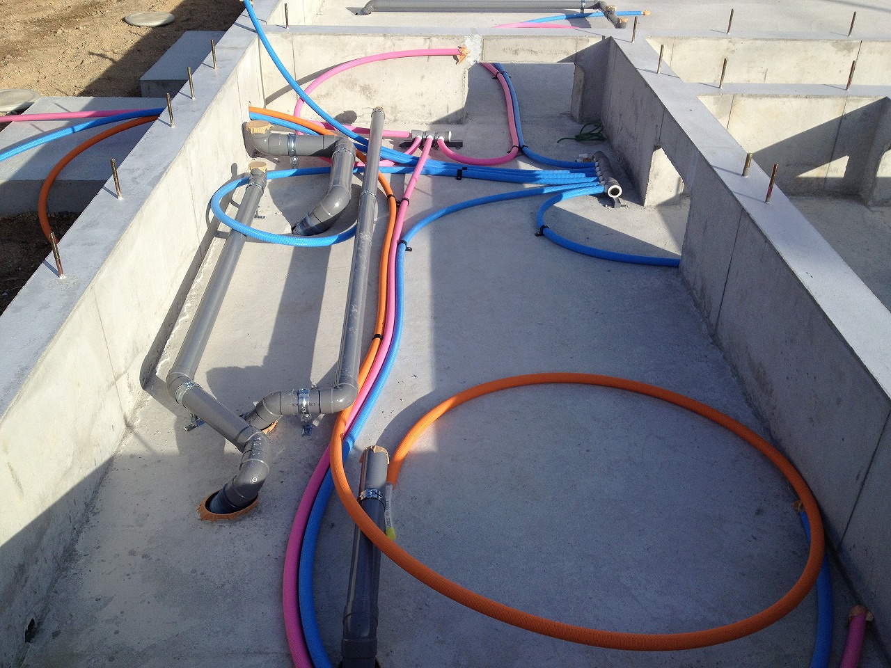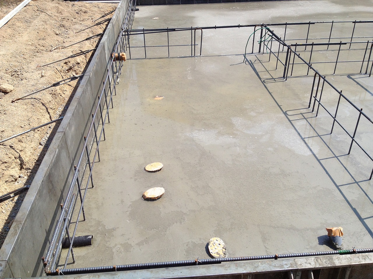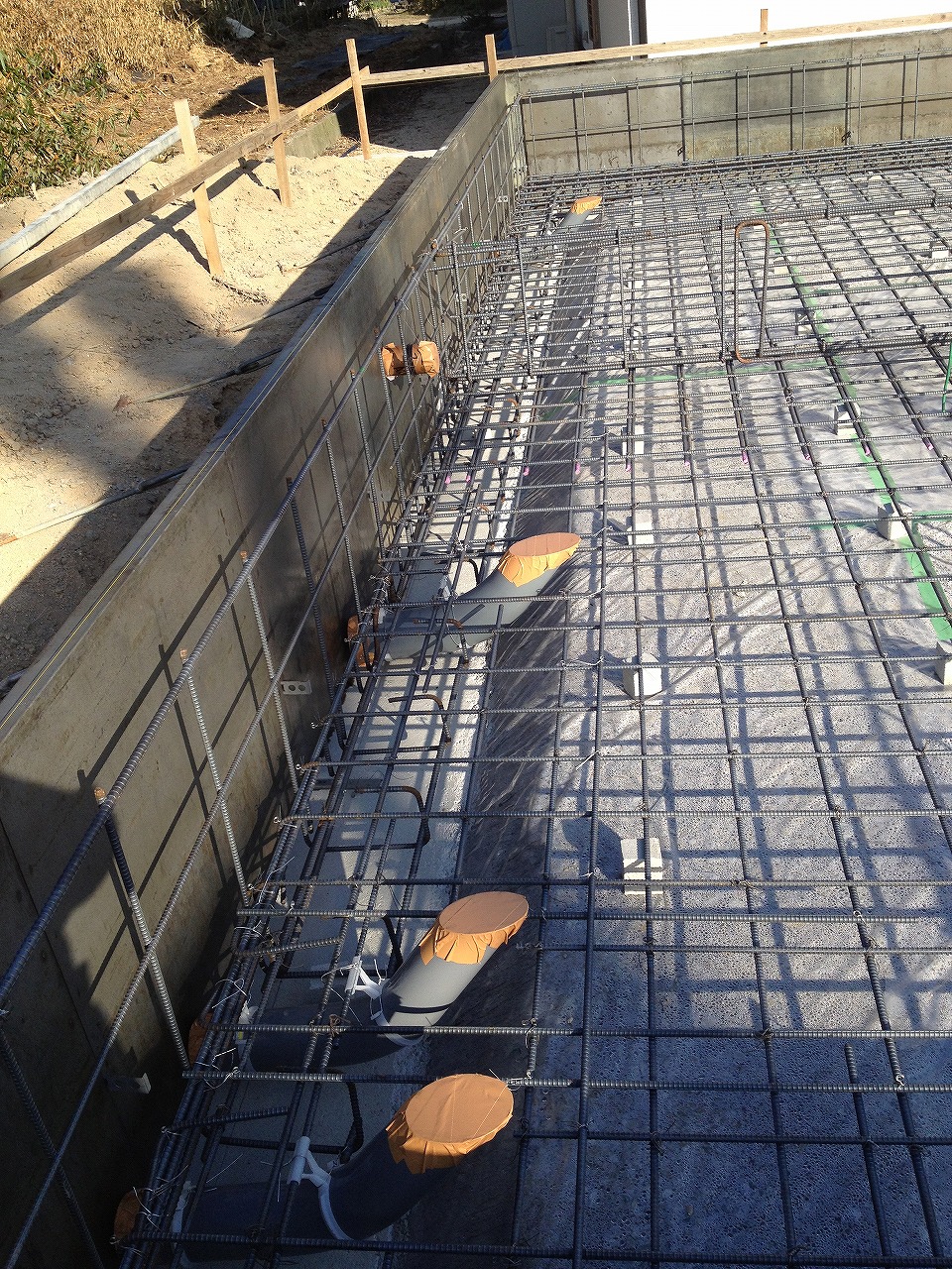 配筋してあり汚水の貫通もいれてありました。
