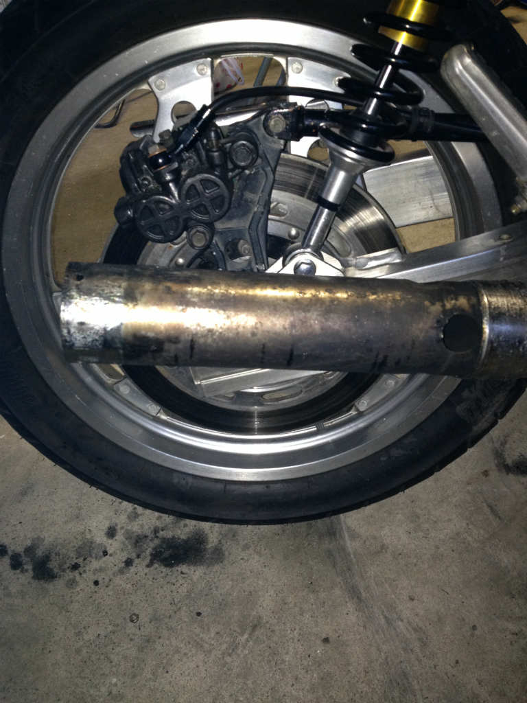 前のショート管はカーカーのエキパイにワンオフショート管でCB750F用 キリッ