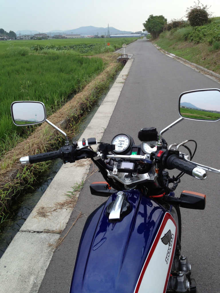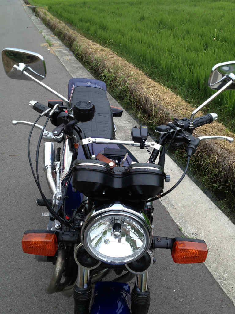今までポッシュのセミハン着けてましたが前屈み気味で運転がダルかったので今回アップハンにしました。