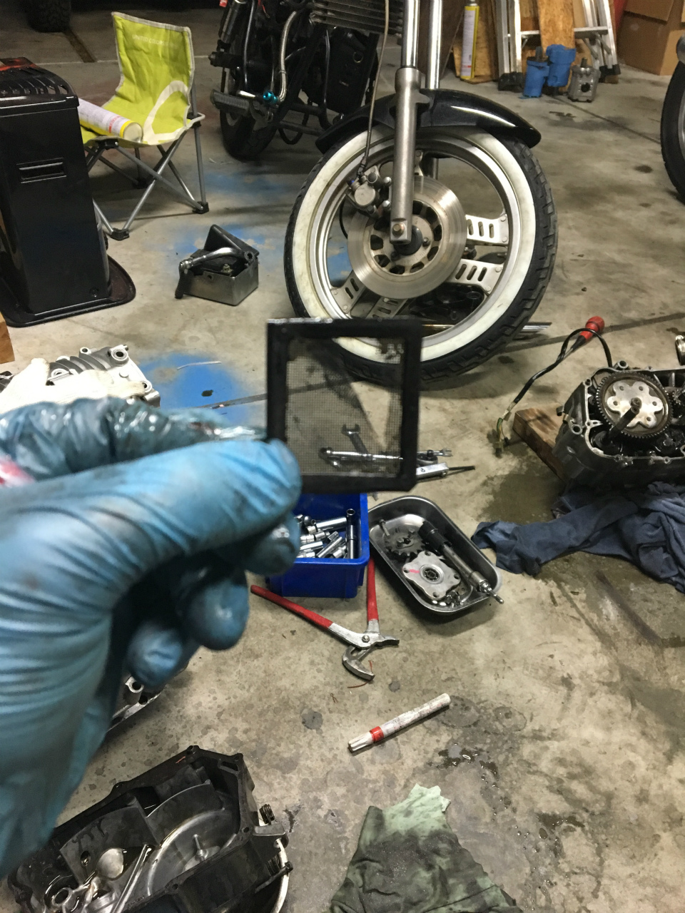 ていうかカムカバー外れてるし、オイル溢れんばかりにめっちゃ入ってるし、パワフィル壊れて筒の中で転がってるしるし何だこのバイク。