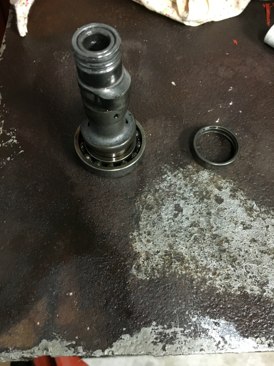 先にオイルシール抜いてベアリングとカラー取り外しました。