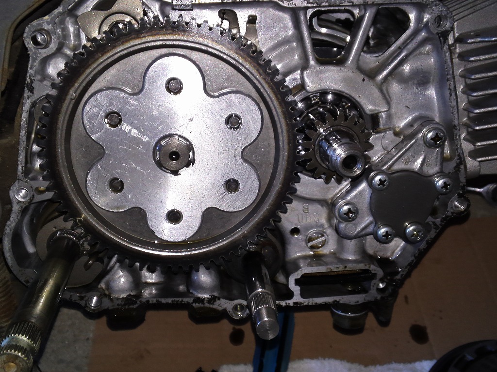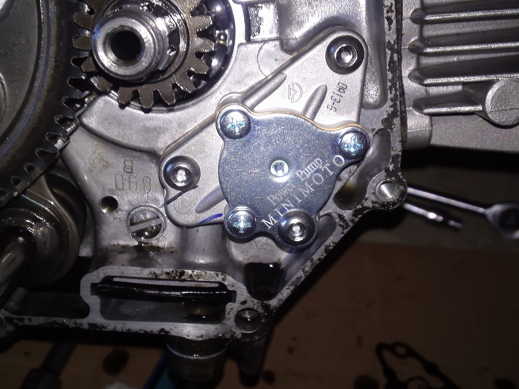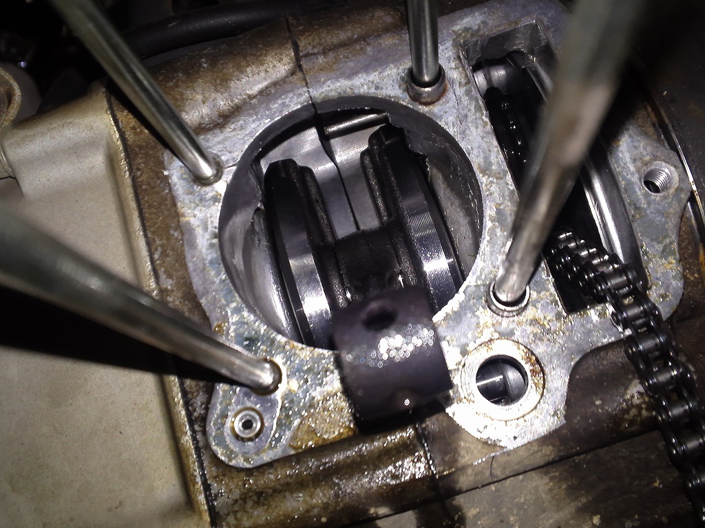 いきなりですがもうヘッド組み込んで次はオイルポンプ交換作業のためケース開けてます。