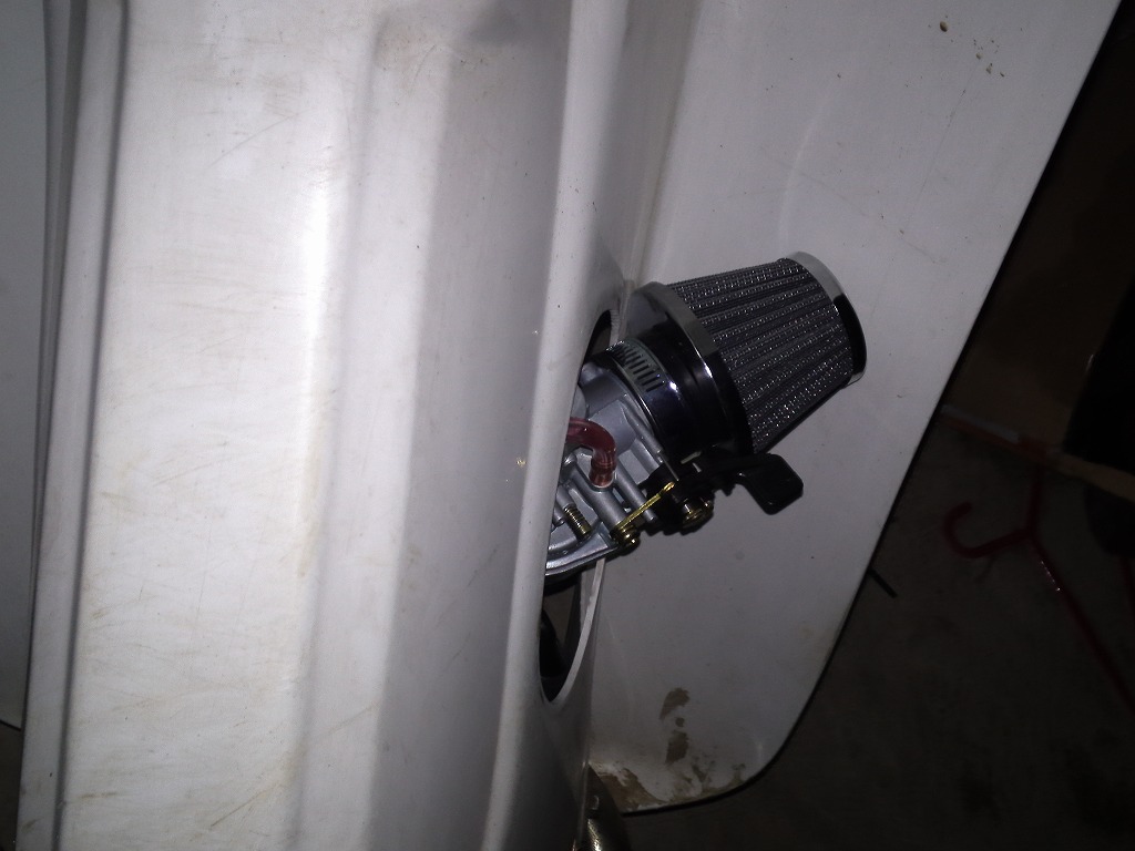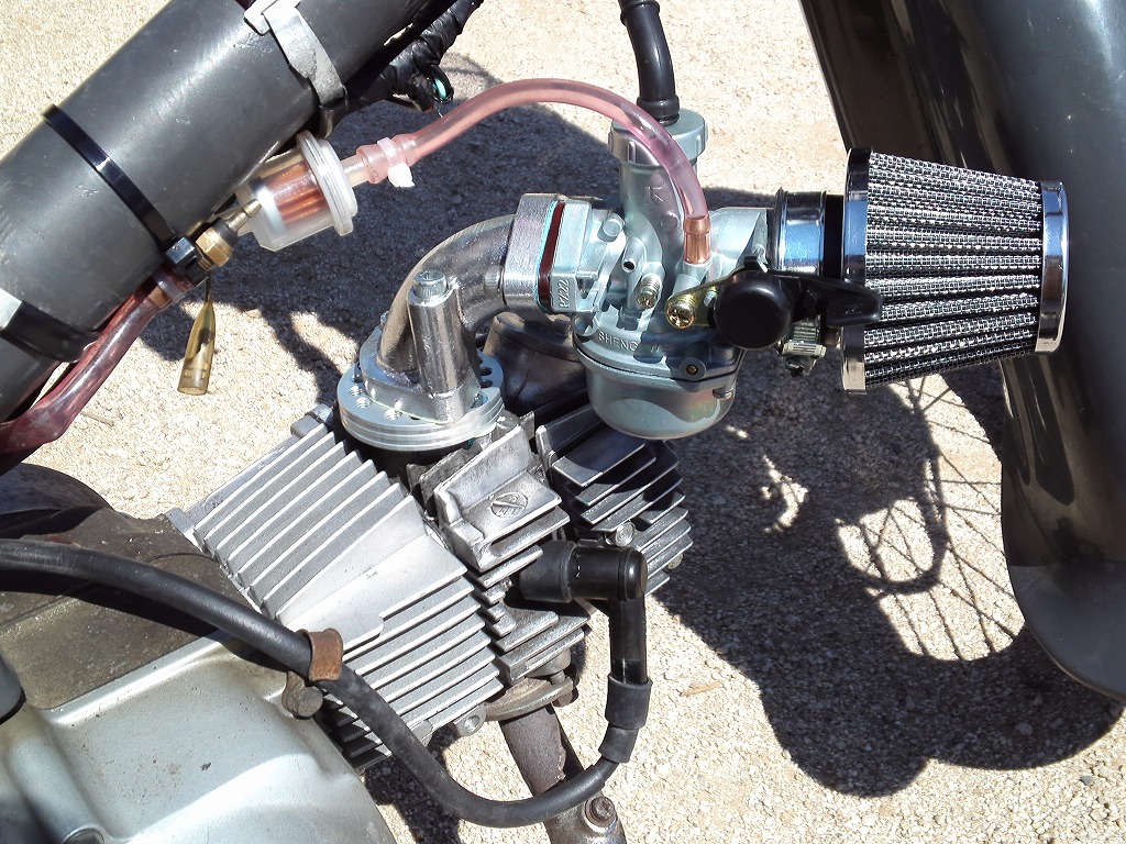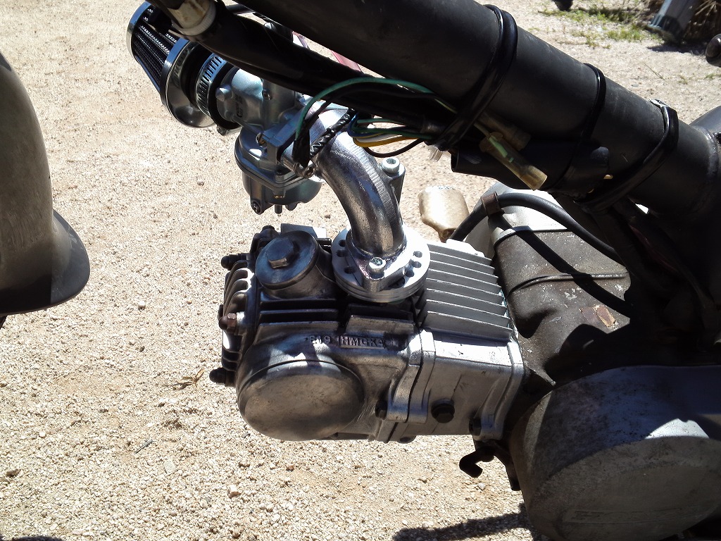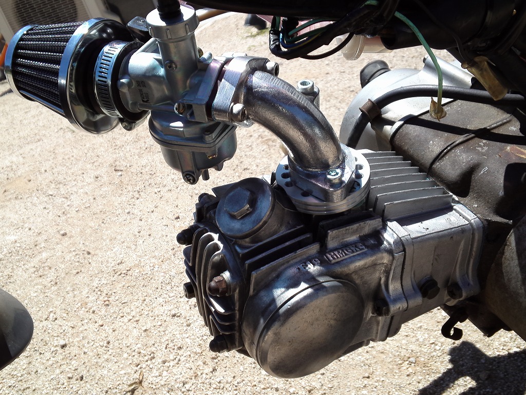 エンジンの↑にビックキャブ付けるとレッグを付けた場合、吸気に支障がでるという情報をいくつかみたのでこうなったんですけどねw