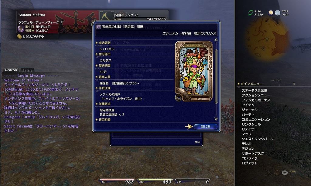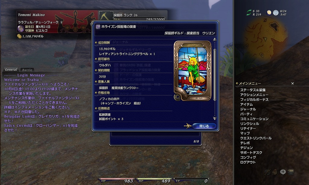 相棒から、ミンフィリアからの依頼を受けないか?と頼まれるので頼みを聞くとスタート。