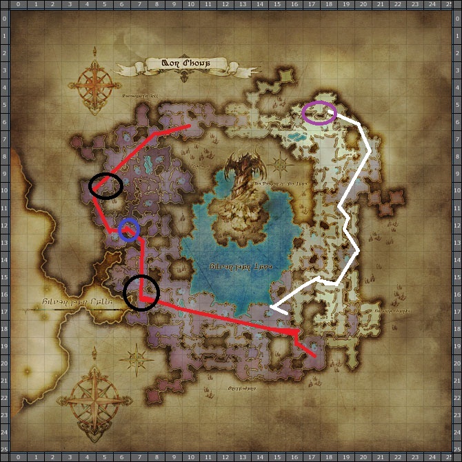 マップ西側の赤線のルートの二種類があります。