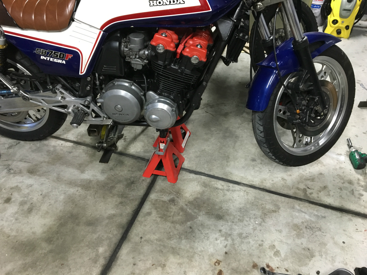 マフラーなんて数分で取り付けられるので安定して作業できるようにいつもこれです。
