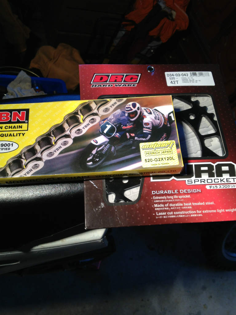 DRCのスチールスプロケ42とYBMの110リンク買いました。