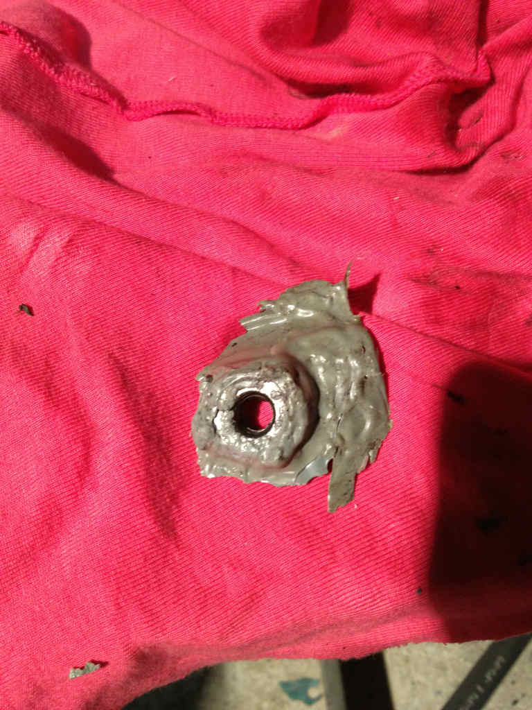 ご覧の通りドレンボルトの真横になる場所に1センチくらいの穴が開いてました。