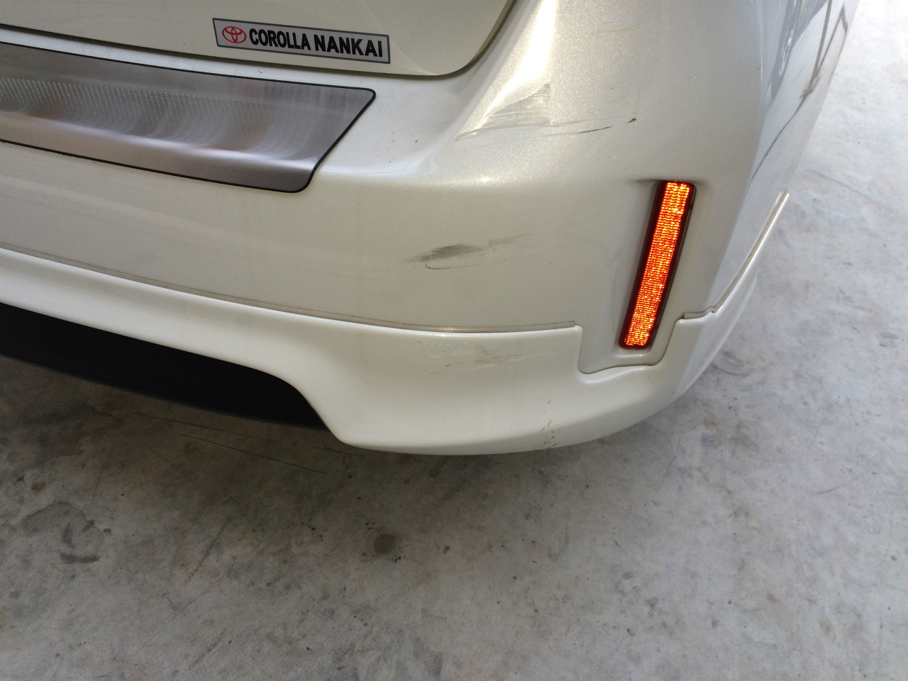 車両見るとテールランプ、リアバンパー、モデリスタ、リアゲートの擦り止めプレート以上4点交換でした。