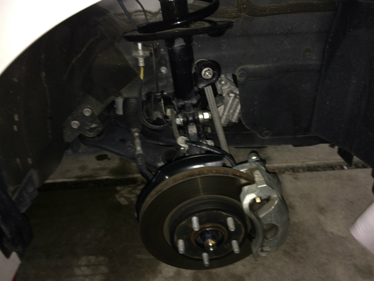ストラットについてるカチカチボルト緩めてスタビのリンクも緩めて外して更に配線も外します。
