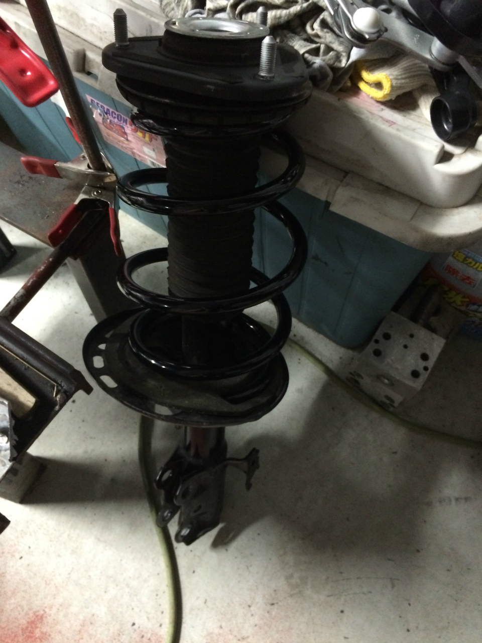 サスコンで縮めて分解してダウンサス入れて再び少しだけ縮めて組みました。