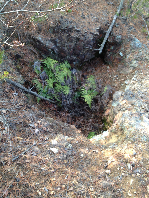 少しズレた谷に大規模な露頭がありずっーと進んでいくと坑口が数個、中を覗くと二つは竪坑でした。