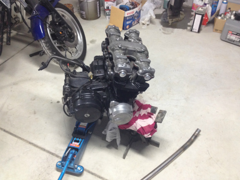 車庫もできて道具と車庫内も整理できたのでCBのエンジン交換作業はじめました。