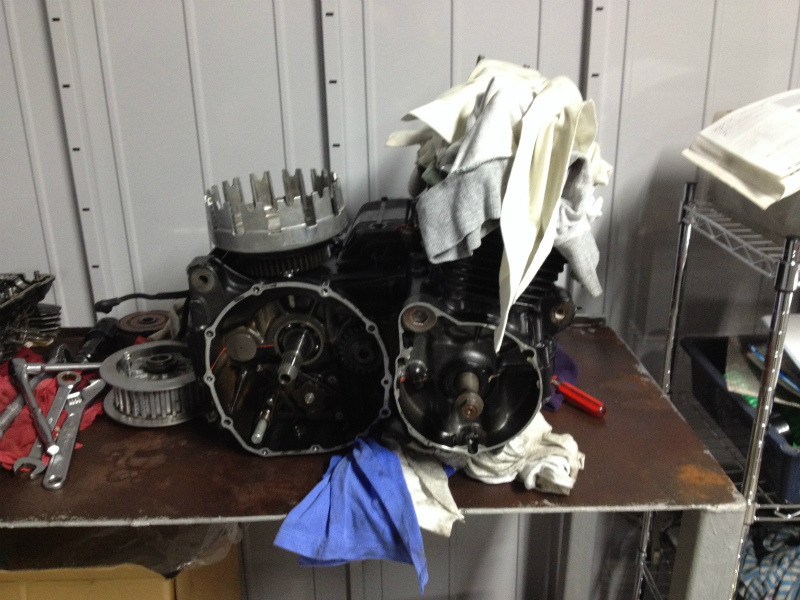 点検をしてから以前組みつけていた900の方に取り付けるエンジンの部品外して行きます。