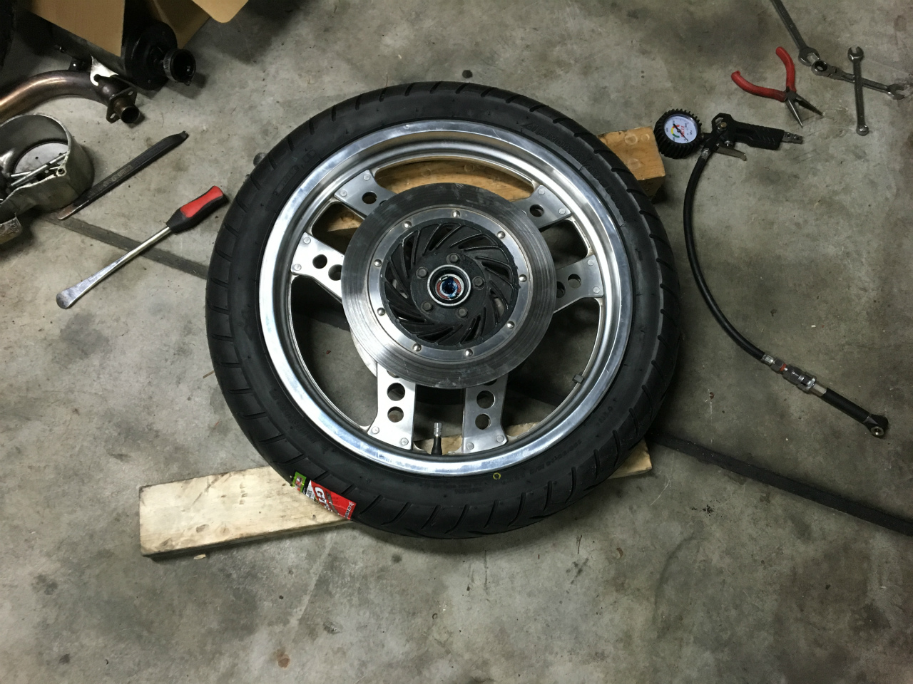 次はタイヤに片方中に片方外にワックス塗ってからホイールにタイヤ被せてしばきあげたらあっ!と言う間にタイヤスコーン。