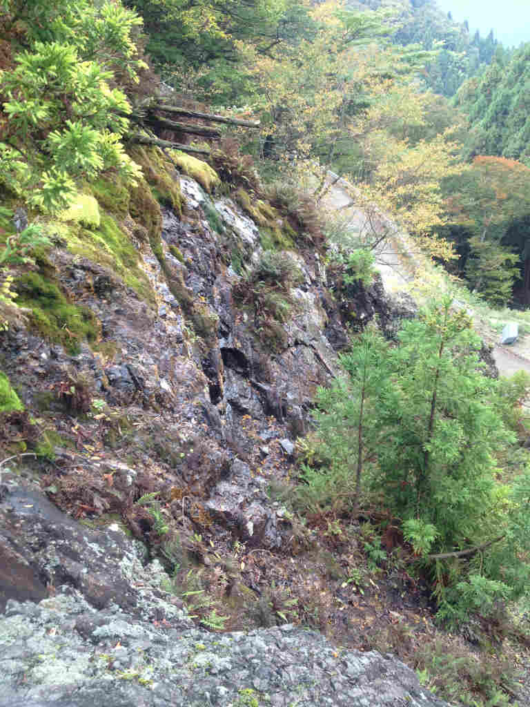 少しズリを下がっていくと露頭がありその上部にはまた抗口があります。